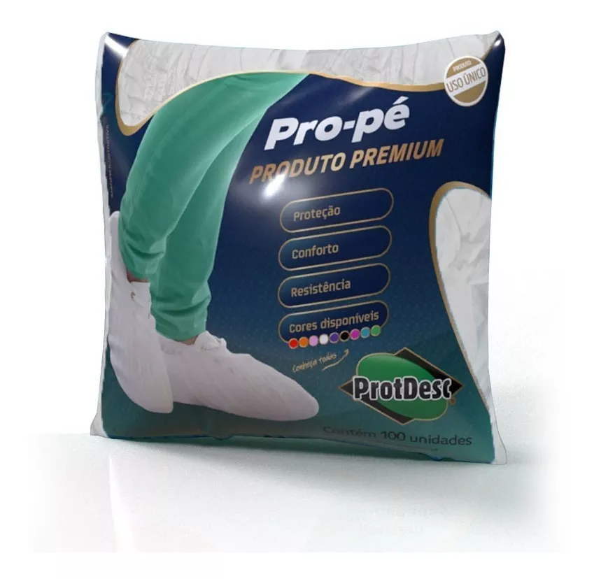 Características do Produto: Sapatilhas protetoras Pro-Pé descartáveis confeccionadas em TNT por processo automatizado.